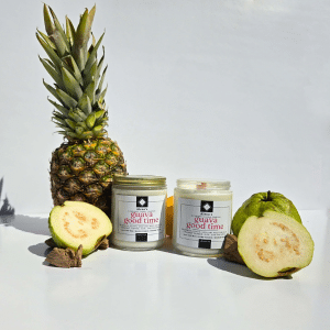 Guava Good Time Soy Wax Wooden wick Candle. A vibrant and invigorating fragrance that transports you to a tropical paradise. Let the juicy notes of starfruit, guava, and lime awaken your senses, while the exotic allure of coconut flower and pineapple adds a touch of tropical bliss. The soothing presence of aloe completes this aromatic journey, leaving you feeling revitalized and refreshed.
