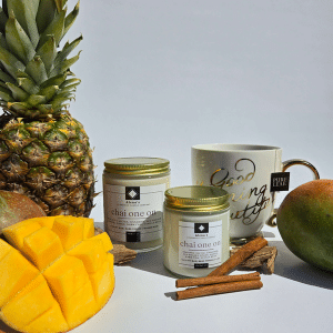 Chai One On Scent Description: pineapple nectar, cinnamon, sun-washed ginger, mango, warm chai, vanilla bean